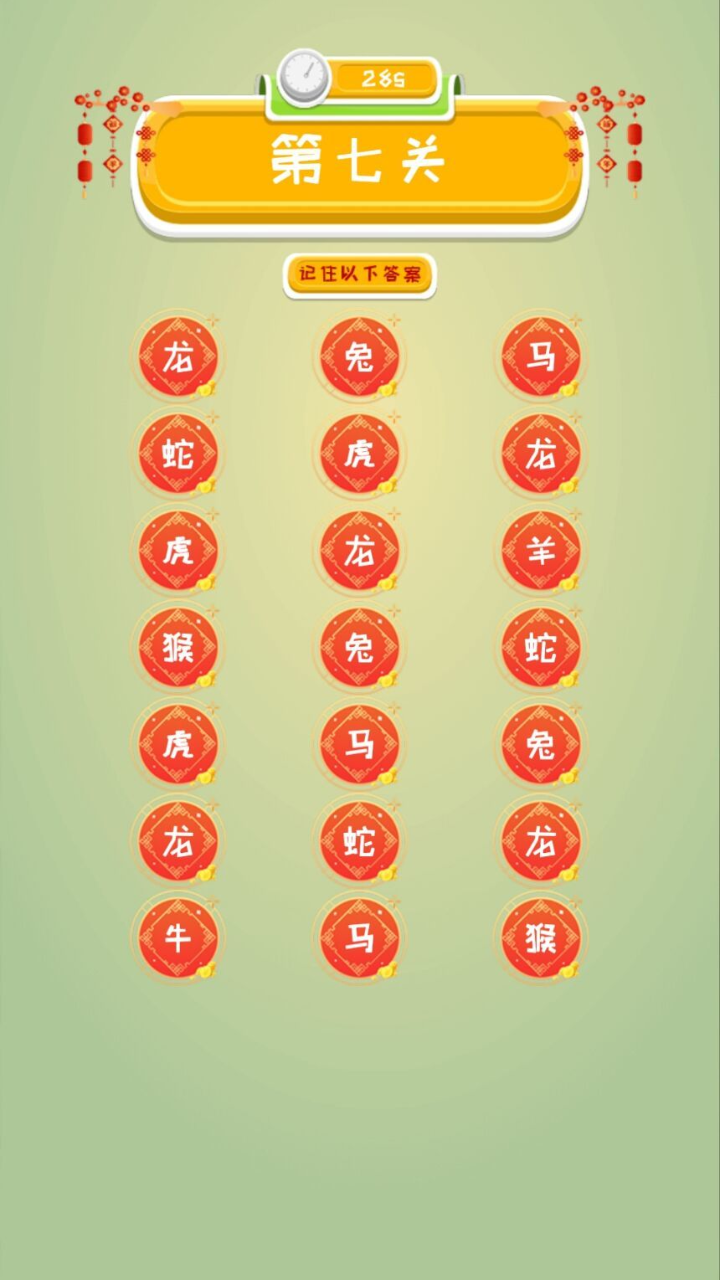 《生肖闯关》是生肖一款以十二生肖为题材的记忆训练小游戏,记忆